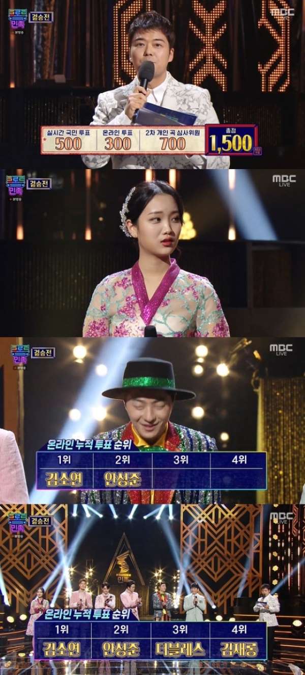 김소연은 지난 1월 8일 저녁 비대면 생방송으로 진행된 트로트의 민족 마지막 결승 경연에서 1위를 차지한 안성준에 이어 2위를 차지하게 되었는데요, 김소연은 올라온 경쟁자 중에서 유일한 10대였고, 유일한 여성이었기에 하이틴 가수 중 1등이고, 여성 출연자 중 1등이 된 것이었습니다.