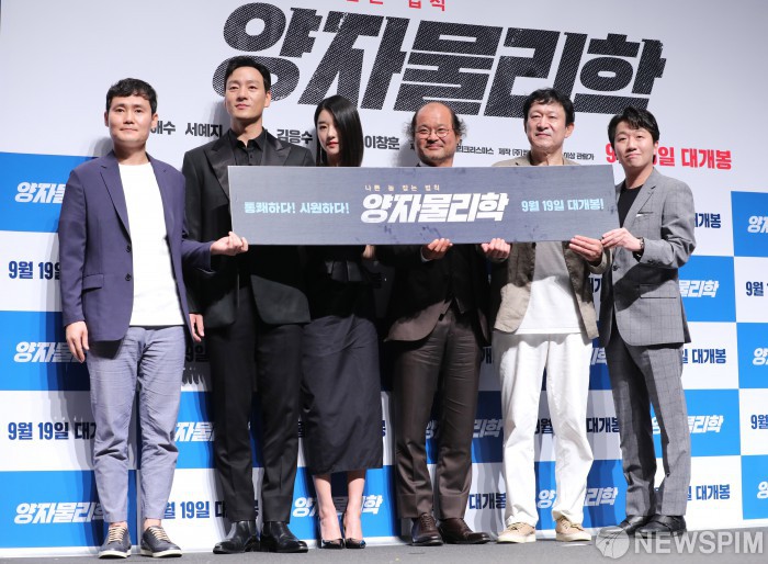 박해수, 서예지, 김상호, 김응수, 이장훈 등이 출연하는 `양자물리학`은 유명 연예인의 마약 사건에 검찰과 정치계가 연결된 사실을 알고 업계 에이스들과 함께 대한민국의 썩은 권력에게 빅엿을 날리는 대리만족 범죄오락극으로 9월19일 개봉 예정인 영화입니다.