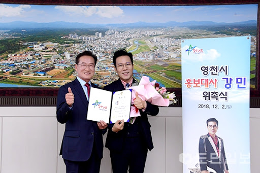 강민은 처가가 경주라는 인연으로 평소에도 웰컴 투 경주 코리아, 경주의 달밤, 그리고 최기문 영천시장의 권유로 금호강 첫사랑 등 대구 경북에 대한 애정을 담은 곡을 많이 발표했으며 이런 인연들을 토대로 지난 2018년에는 영천시 홍보대사로 위촉되기도 했습니다. 참고로, 올해 나이 54세인 강민인데요, 강민 결혼 아내(부인) 자녀 등 정보는 아직 전혀 공개되지 않았네요.