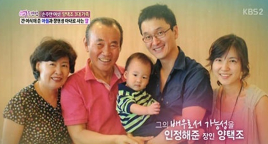 양택조는 인생다큐 마이웨이에서 사위 장현성과의 끈끈한 가족애를 과시하기도 했는데요, 과거 간경화로 시한부 선고를 받았을 때, 병원에서 3개월밖에 남지 않았다는 시한부 선고를 받고 이제 인생이 끝났구나 라는 절망감을 느꼈다고 합니다.
