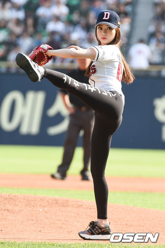 양정원은 2016년 5월 28일 두산 베어스 대 LA트윈스 잠실시리즈에서 시구를 하기도 했는데요, 두산 베어스의 스폰서 참다한 홍삼이 적혀있는 밀착 레깅스 줄무늬와 필라테스 동작을 응용한 와인드 업이 포인트라고 합니다.