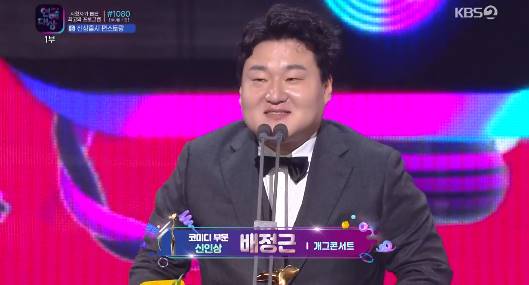 배정근은 유민상, 김민경, 송영길, 김수영, 김태원 등과 같이 실제로 많이 먹고 뚱뚱하다는 특이점이 있어 주로 뚱뚱한 역할을 맡았는데요, 개콘 개편 후 신설된 2019 생활사투리에서 충청도 사투리 사용자로 등장해 인기를 얻으며 2019년 KBS 연예대상 코미디 부문 신인상까지 거머쥐는 영광을 차지했습니다.