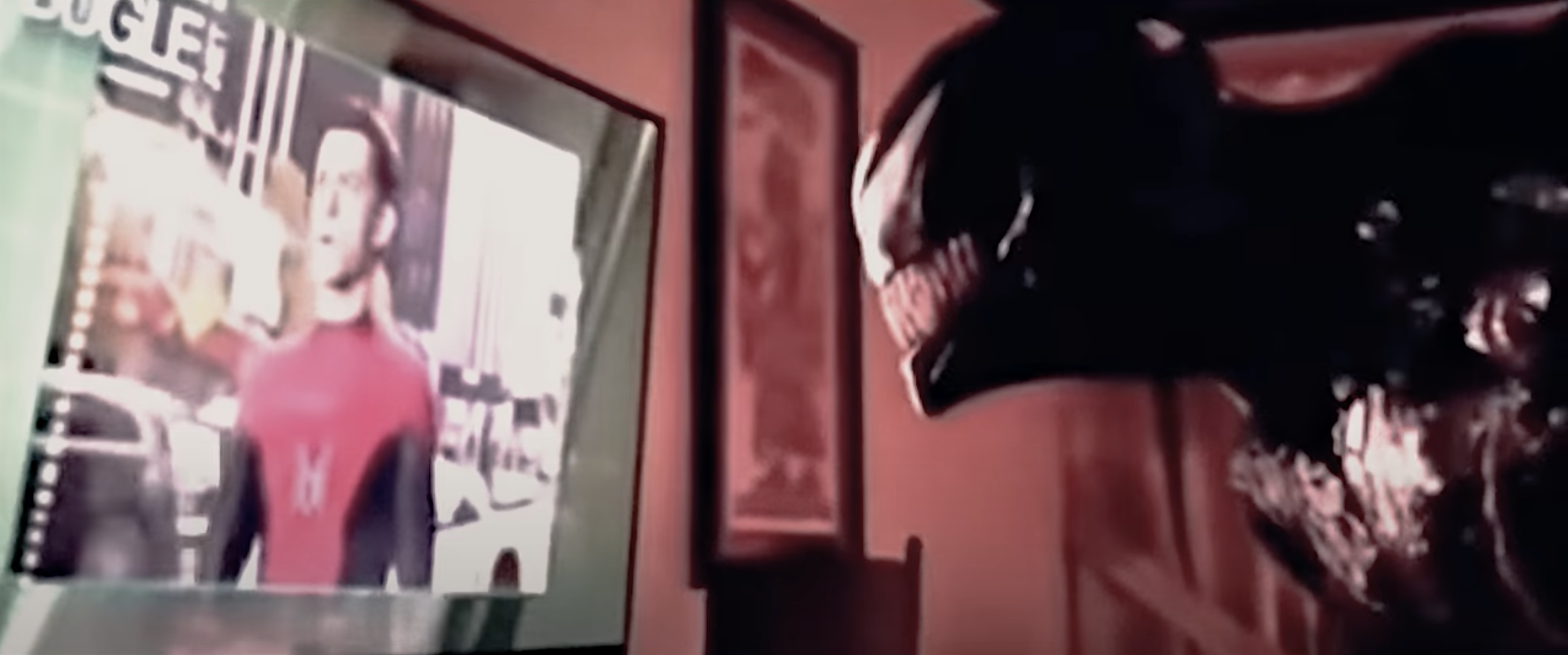 그때 에디가 보고 있던 TV 화면이 드라마에서 어느 뉴스 화면으로 바뀌는데, 화면은 우리가 스파이더맨 파 프롬 홈의 엔딩 크레딧에서 봤던 분노에 찬 데일리 뷰글 편집장 제이조나 제임슨이 스파이더맨이 피터 파커이고 그가 영웅 미스테리오의 살인자라고 밝히는 장면이 나오고 있었습니다.