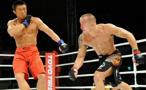 그리고 같은 해 K-1 다이너마이트 대회에서 일본의 격투기 영웅 사쿠라바 가즈시와 대전해 TKO승을 거두었지만, 이후 반칙 행위(크림도포)가 발각되어 경기는 무료 경기가 되었고 무기한 출장 정지 처분을 받게 됩니다.