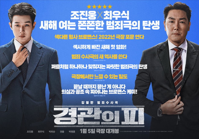 영화 경관의 피는 특히 작품마다 강렬한 존재감을 보여주는 배우 조진웅과 영화 기생충 이후 새로운 연기 변신을 선보인 최우식의 만남으로 많은 기대를 모았던 작품입니다.