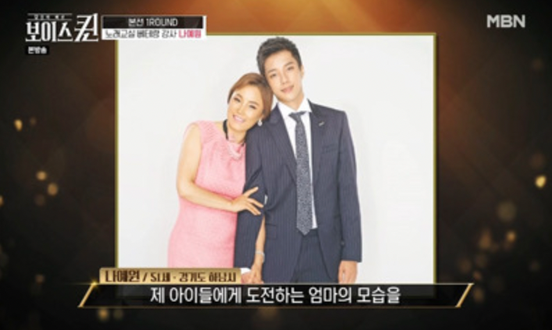 나예원은 올해 나이 54세로 이미 결혼해 남편과 자녀를 두고 있는 것으로 알려져 있는데요, 남편과 자녀에 대해서는 구체적으로 알려진 바가 없고, 다만 아들과 함께 한 사진이 보이스퀸 출연 당시 공개된 적이 있습니다.