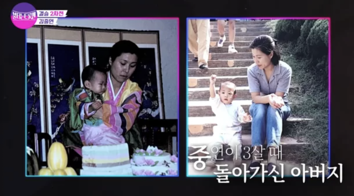 참고로, 김중연의 아버지는 김중연이 3살 때 먼저 세상을 떠났다고 합니다. 그래서 김중연은 이제까지 아버지를 한 번도 불러본 적이 없다고 합니다.