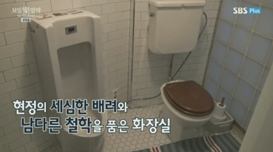 또 여러 개의 스틸 케이스와 다양한 디자인의 의자, 수없이 많은 나무 도마까지 있었고, 손님용 화장실에는 손님의 성별을 고혀한 입식 소변기가 설치돼 집주인의 배려심을 엿보이게 했습니다.