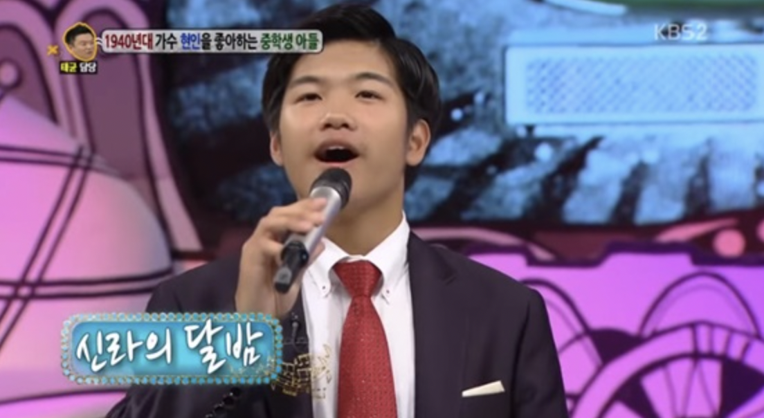 그러다가 2013년 KBS 안녕하세요에 가족과 함께 출연, 40년대 문화에 젖어 양복입기를 좋아하고 흑백영화를 즐겨보는 애늙은이 중학생으로 사회자들과 방청객을 놀라게 하는 노래를 불렀습니다.