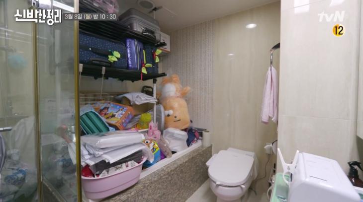 게다가 멀리 사는 지인들에게도 음식을 보내주기 위해 쟁여둔 스티로폼 박스 장벽은 충격을 안길 예정이라고 하는데요, 뿐만 아니라 집안 곳곳 넘쳐나는 짐들로 인해 창고화 되고 있는 것도 문제, 특히 이날 방송에서는 신박한 정리단을 충격에 빠뜨린 상상초월 화장실이 등장해 눈길을 끌었습니다.